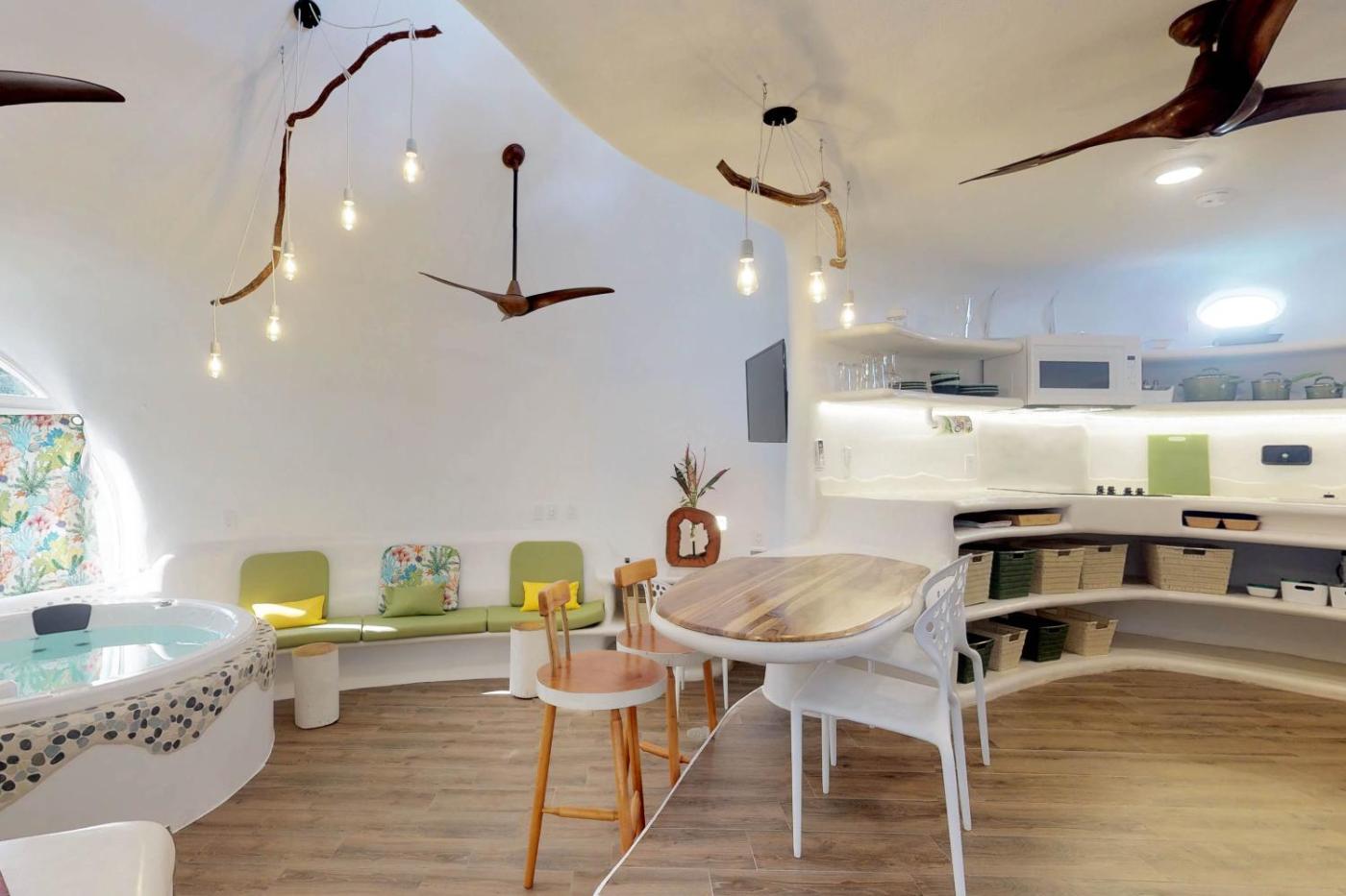 One Bedroom Villa. Guests will have a special experience as this villa features a infinity pool and a hot tub. Featuring a private entrance, this air-conditioned villa is comprised of a kitchen, 1 bedroom and 1 bathroom with a walk-in shower and a hairdryer. Guests can make meals in the kitchen that comes with a stovetop, a refrigerator, kitchenware and an oven. Boasting a terrace with lake views, this villa also offers a washing machine and a flat-screen TV with streaming services. The unit offers 2 beds.